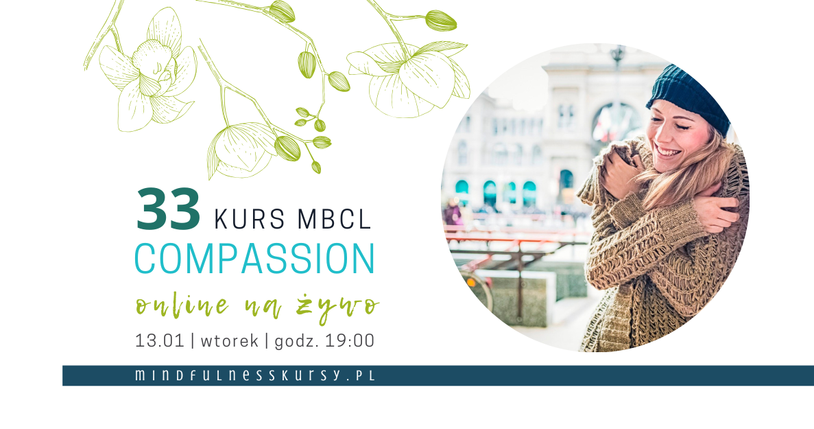 Zapraszam serdecznie we wtroek, 13.01.2026, o godz. 19:00 na 8-tyg. Kurs Compassion (MBCL – Mindfulness-Based Compassionate Living). Spotkamy się ONLINE na żywo (na platformie ZOOM). MBCL – to program kierowany do Absolwentów 8-tyg. kursów Mindfulness (MBSR/MBCT/MBLC/Breathworks).